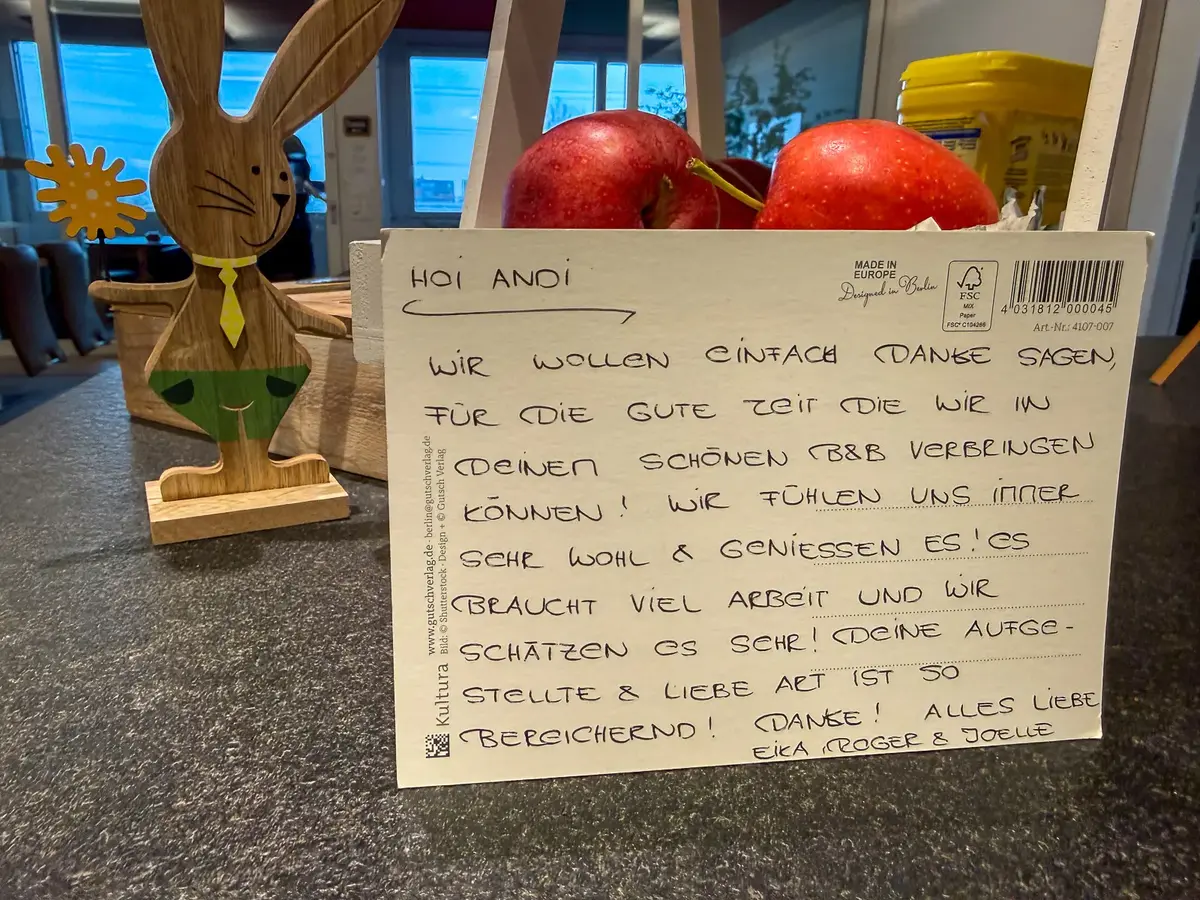 Geniessen Sie authentische Gastfreundschaft in unserem heimeligen BnB. Ob Sie geschäftlich unterwegs sind oder einfach eine Auszeit vom Alltag suchen – bei uns sind Sie genau richtig.